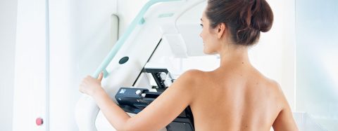 O exame de mamografia é rápido, simples e seguro. Após vestir um avental na parte de cima do corpo, a mulher é posicionada em pé na frente do mamógrafo.